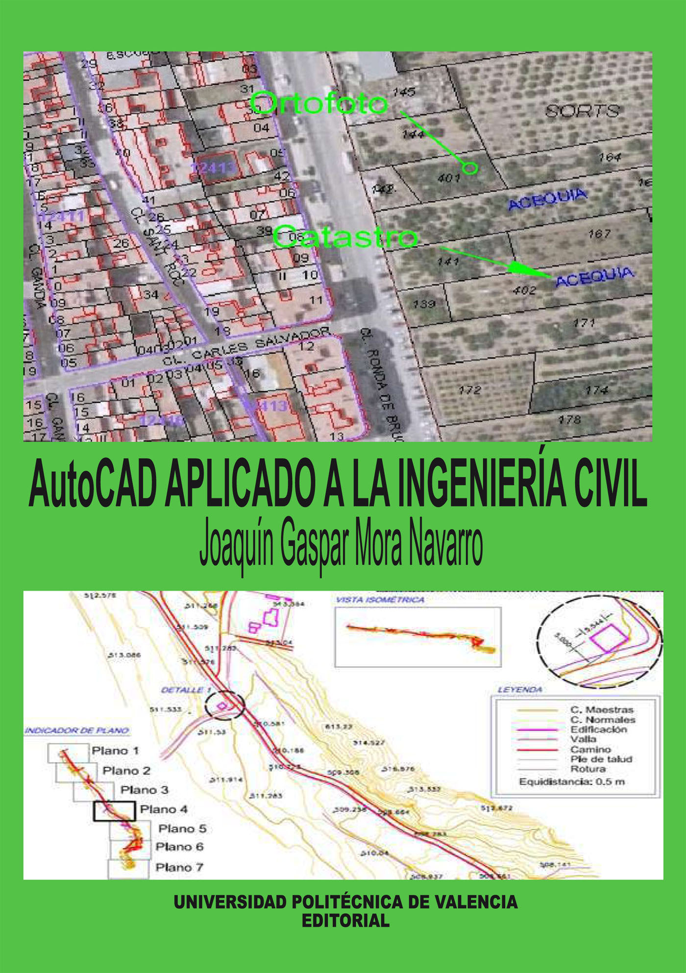 La primera edición salió con el título “AutoCAD aplicado a la topografía”. Se explican muy despacio todas las herramientas de dibujo, selección, edición e impresión, para aplicarlas resolviendo problemas típicos de la ingeniería civil: generación de planos topográficos en dos y tres dimensiones, ajuste de áreas, digitalizaciones, encaje de proyectos de obras, acotaciones, detalles, edificaciones, etc. Este manual es especial porque no describe herramientas separadas. Explica los conceptos que se necesitan y muestra un método de trabajo para trabajar y resolver. Enseña a planificar y automatizar, de modo que los planos se produzcan con rapidez, seguridad y máxima calidad al primer intento. Después de leer este manual se sentirá cómodo y seguro con el trabajo que realiza en AutoCAD.