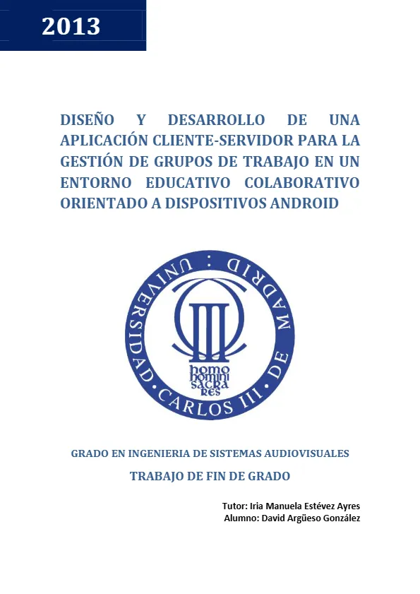 | Título: | DISEÑO Y DESARROLLO DE UNA APLICACION CLIENTE-SERVIDOR PARA LA GESTION DE GRUPOS DE TRABAJO EN UN ENTORNO EDUCATIVO COLABORATIVO ORIENTADO A DISPOSITIVOS ANDROID |