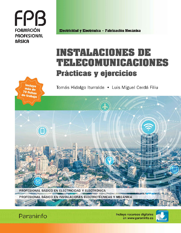 En este libro se desarrollan de manera teórico-práctica los contenidos del módulo profesional de Instalaciones de Telecomunicaciones que se imparte en los títulos de Profesional Básico en Electricidad y Electrónica, y de Profesional Básico en Instalaciones Electrotécnicas y Mecánica.