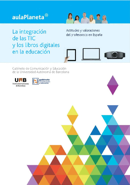 El estudio “La integración de las TIC y los libros digitales en la educación. Actitudes y valoraciones del profesorado en España”, realizado por el Gabinete de Comunicación y Educación de la UAB y aulaPlaneta, pone de manifiesto el gran avance conseguido en España en la integración de las nuevas tecnologías de la información y la comunicación en la educación en sus dos aspectos principales: en la dotación tecnológica de los centros y en las actitudes del profesorado respecto a la introducción de los libros de texto digitales en la práctica educativa. Por un lado, los informes internacionales como el Observatorio Europeo Schoolnet demuestran que los centros educativos españoles han mejorado las dotaciones tecnológicas en número de ordenadores, pizarras digitales o proyectores, y conexión a Internet. De este modo, la evolución del número de estudiantes usuarios de Internet (desde casa o desde el centro) es altísima y pasa a los primeros puestos de países europeos. Por otro, la investigación demuestra que la actitud del profesorado es positiva ante el cambio progresivo del libro de texto convencional por el digital. Los docentes que participaron en la investigación veían “factible” y “conveniente” la sustitución de uno por otro, a corto y medio plazo. Gracias a los estudios cualitativos, además, el estudio identifica las ventajas y reticencias del profesorado a los libros y plataformas digitales educativas, y recogen los valores esenciales del libro de texto ideal. La integración de las TIC en la educación es en la actualidad una oportunidad sin precedentes para mejorar los resultados del sistema educativo, innovar en las prácticas didácticas y desarrollar la competencia mediática de los estudiantes españoles.