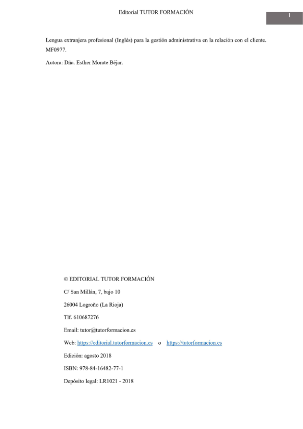 | Título: | Lengua extranjera profesional (Inglés) para la gestión administrativa en la relación con el cliente. MF0977. |