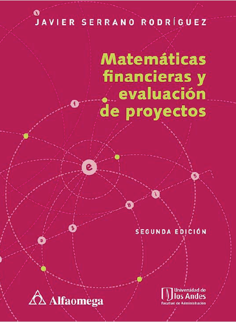 Este libro de matemáticas financieras y evaluación de proyectos es el resultado del trabajo docente del profesor Javier Serrano Rodríguez en sus cursos de pregrado y posgrado en la Facultad de Administración de la Universidad de los Andes, durante los últimos 30 años, especialmente en el curso de Gerencia Financiera del MBA y en el curso de Análisis de Decisiones de Inversión y Financiamiento en el Magíster en Administración Ejecutivo (EMBA), del cual ha sido su profesor en las nueve promociones del programa.