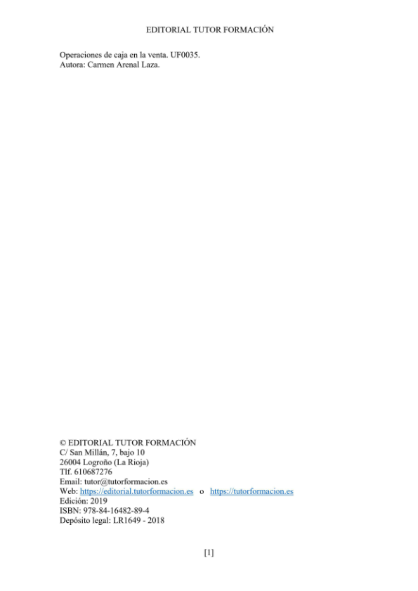 Este Manual es el más adecuado para impartir la UF0035 “Operaciones de caja en la venta” de los Certificados de Profesionalidad, y cumple fielmente con los contenidos del Real Decreto.Puede solicitar gratuitamente las soluciones a todas las actividades y al examen final en el email [email protected]