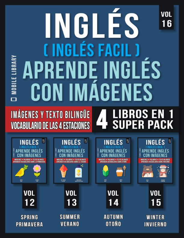 Este Pack reúne 4 volúmenes de la colección aprende palabras con imágenes dedicadas al vocabulario de Las Estaciones , que te permiten aprender fácilmente un nuevo idioma con la ayuda de imágenes. Úsalo para grabar y aprender palabras en inglés más rápido. Estos son los primeros 4 volúmenes incluidos en este Super Pack: [VOL 12] – PALABRAS SOBRE LA PRIMAVERA [VOL 13] – PALABRAS SOBRE EL VERANO [VOL 14] – PALABRAS SOBRE EL OTOÑO [VOL 15] – PALABRAS SOBRE EL INVIERNO ¡Utilice este diccionario visual temático económico para grabar y aprender vocabulario en inglés más rápido!