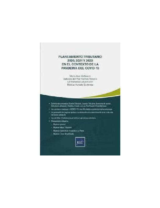 | Título: | PLANEAMIENTO TRIBUTARIO 2020, 2021 Y 2022 EN EL CONTEXTO DE LA PANDEMIA DEL COVID -19 |