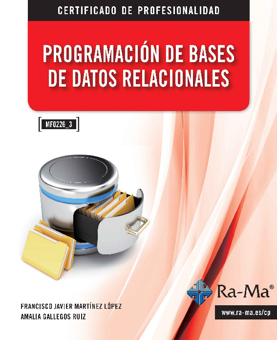 Los certificados de profesionalidad son titulaciones oficiales válidas en todo el territorio nacional que acreditan la capacitación para el desarrollo de una actividad laboral. Para su obtención es necesario superar todos los módulos formativos que integran certificados. La presente obra se ha tratado de ajustar en lo posible a los contenidos oficiales del módulo formativo de 210 horas de duración llamado “Programación de bases de datos relacionales” (MF0226_3), incluido en los certificados de profesionalidad “Programación con lenguajes orientados a objetos y bases de datos relacionales” (IFC0112) y “Programación en lenguajes estructurados de aplicaciones de gestión” (IFCD0111), ambos de nivel 3, el nivel más alto que se otorga a una cualificación profesional. Dicho módulo trata de ofrecer una visión general de las bases de datos relacionales, incluyendo los principios generales de los sistemas gestores de bases de datos, metodología de análisis y diseño para implementarlas, así como los principales lenguajes de programación para implementarlas y explotarlas. Aunque durante el libro se quiere dar una visión general de este tipo de bases de datos y de sus elementos, también se describen DBMS concretos y se realizan ejercicios guiados con sistemas concretos y con herramientas muy diversas, con el objetivo de llevar a la práctica lo estudiado a lo largo de los capítulos que integran el trabajo. Capítulos que integran el trabajo.
