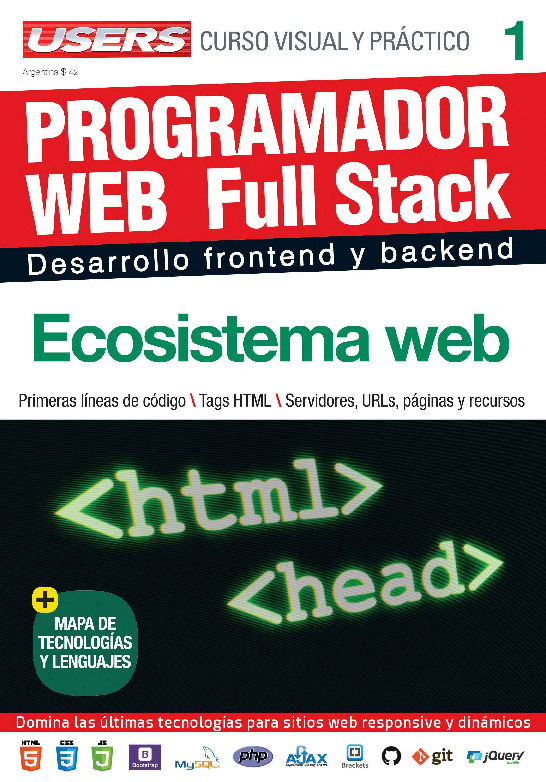 A lo largo de 24 fascículos, repletos de ejemplos, ejercicios y explicaciones visuales, aprenderás tanto los lenguajes y tecnologías frontend como backend: HTML, CSS, JavaScript, PHP, MySQL, JQuery y más. ¡Son varios cursos en uno solo!