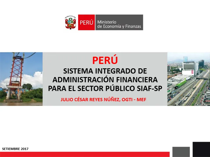 | Título: | SISTEMA INTEGRADO DE ADMINISTRACIÓN FINANCIERA PARA EL SECTOR PÚBLICO SIAF-SP JULIO CÉSAR REYES NÚÑEZ, OGTI – MEF |