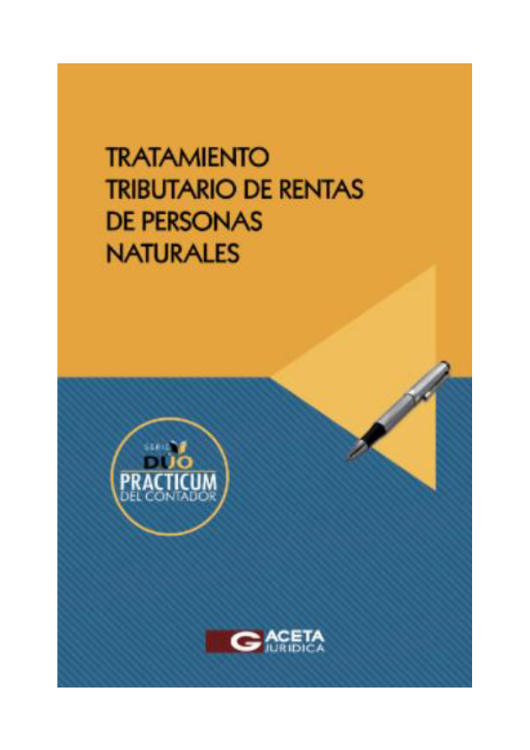 Tratamiento tributario de rentas de personas naturales expone de manera esquematizada y simple el tratamiento aplicable a las rentas generadas por personas naturales domiciliadas que no realizan actividades empresarial, así como las sucesiones indivisas y sociedades conyugales que han decidido tributar como tales, a las cuales les corresponde el mismo tratamiento, mientras que Incremento patrimonial no justificado de personas naturales da a conocer de manera clara y accesible los tópicos más relevantes relacionados al tratamiento tributario de la presunción de rentas que recaen en las personas naturales.